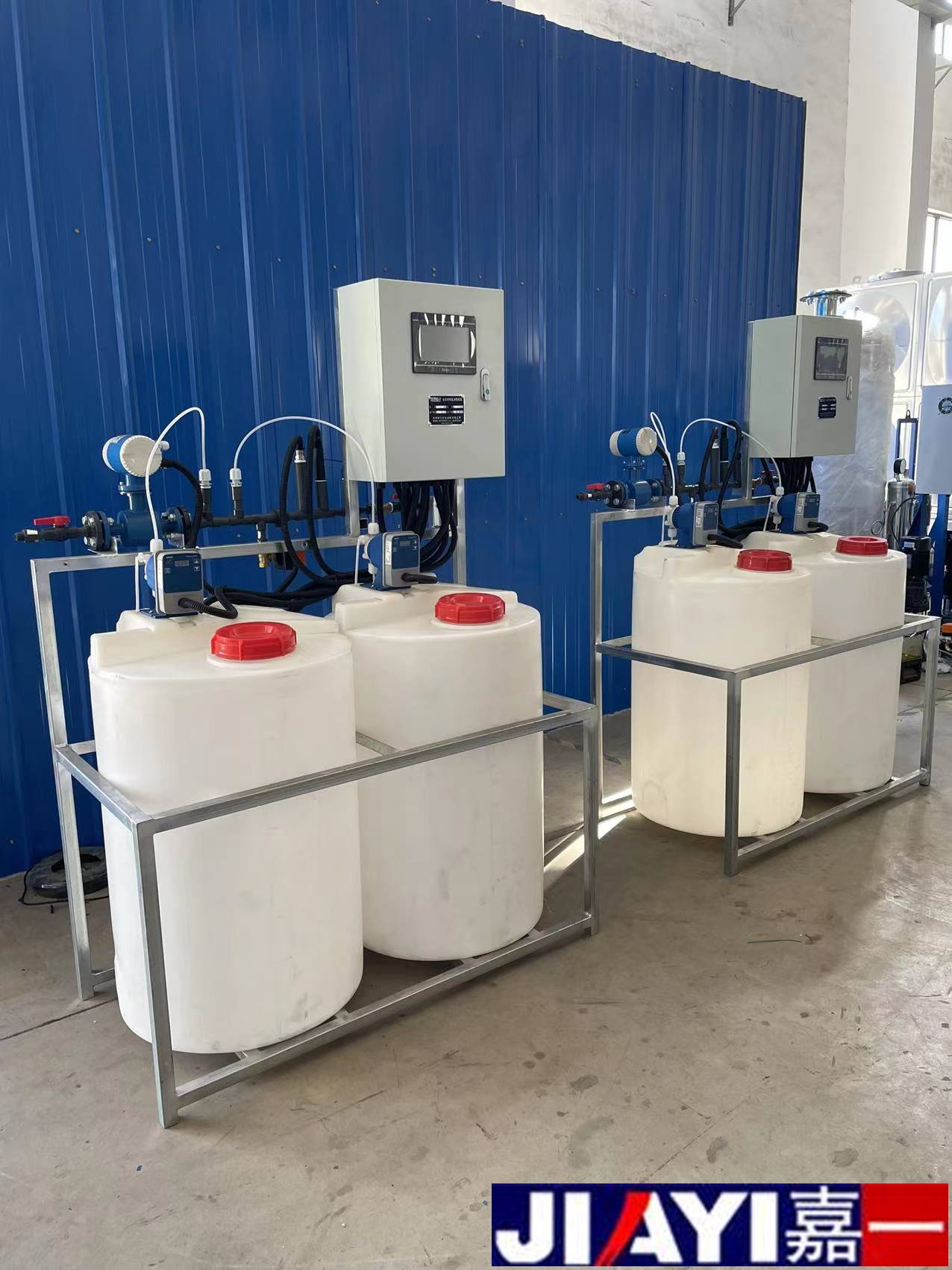 全自動加藥裝置采用時間程序控制,此控制方式無需儀表的支持,首先根據系統的運轉需要設定自動加藥的周期、加藥量、加藥時間和加藥頻率。在以后的系統運轉過程中,到加藥周期,計量泵自動打開加藥,加到規定的時間計量泵關閉;到排污周期,計量泵停止加藥,排到規定的時間后,計量泵繼續開啟,補充排污損失掉的藥劑,把系統的含藥量維持在正常的水平、加到規定的時間計量泵關閉。