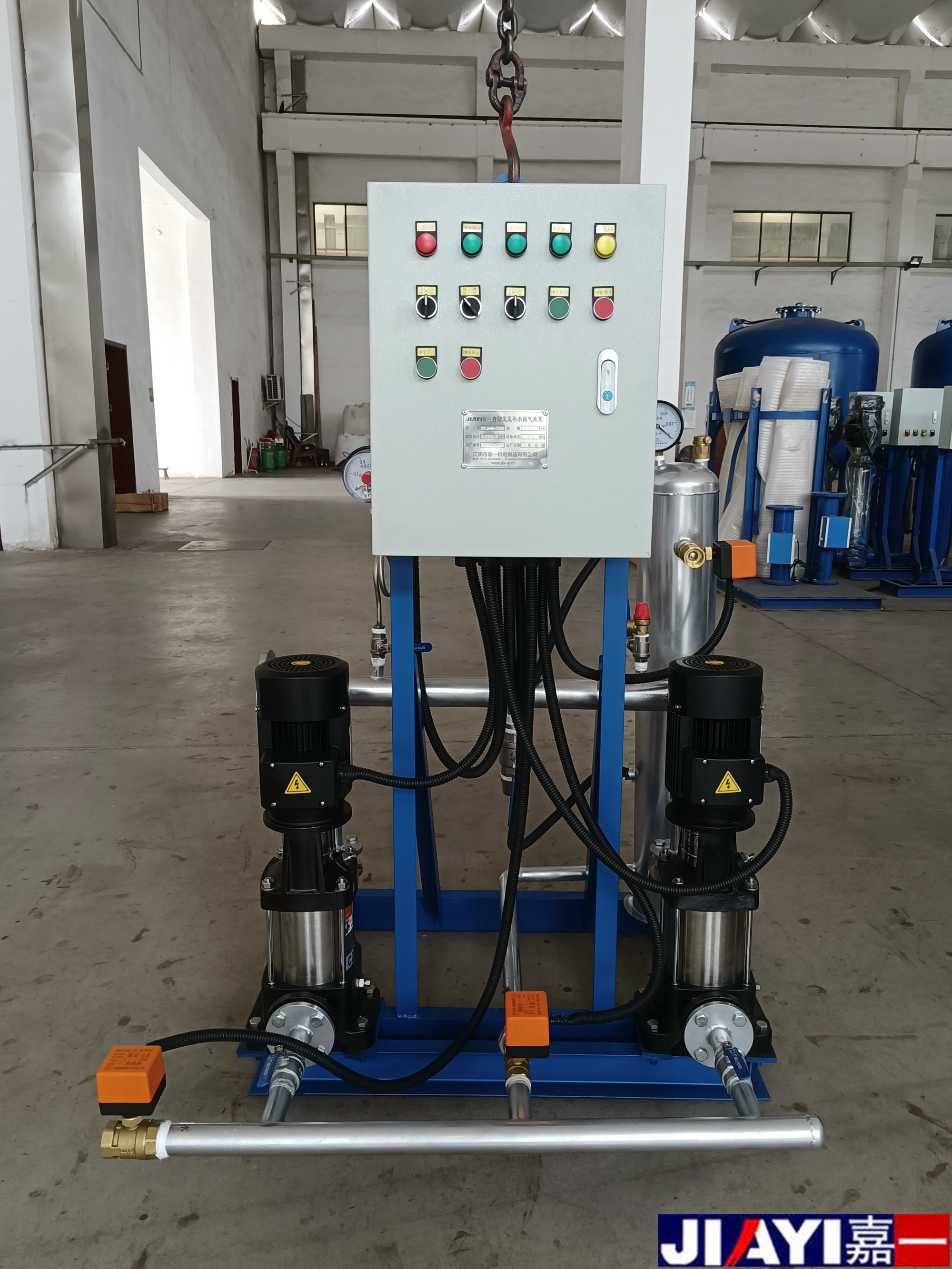 定壓補(bǔ)水機(jī)組由囊式壓力罐、水泵、控制箱、底架、壓力感應(yīng)裝置、管道閥門等組合而成,是一種兼有升壓、調(diào)節(jié)、儲(chǔ)水、供水等多種功能的常用供水設(shè)備。定壓補(bǔ)水機(jī)組利用氣壓罐的可調(diào)節(jié)能力,可自動(dòng)調(diào)節(jié)用戶水量的變化,當(dāng)用水量減少或不用水時(shí),可較長時(shí)間不啟動(dòng)水泵,達(dá)到節(jié)能目的。與水塔、高位水箱相比可節(jié)省投資約40%-60%。該設(shè)備結(jié)構(gòu)緊湊,與其他傳統(tǒng)的供水裝置相比減少了占地面積,節(jié)省了土地資源。本設(shè)備全自動(dòng)運(yùn)行,無需專人管理,工作可靠。