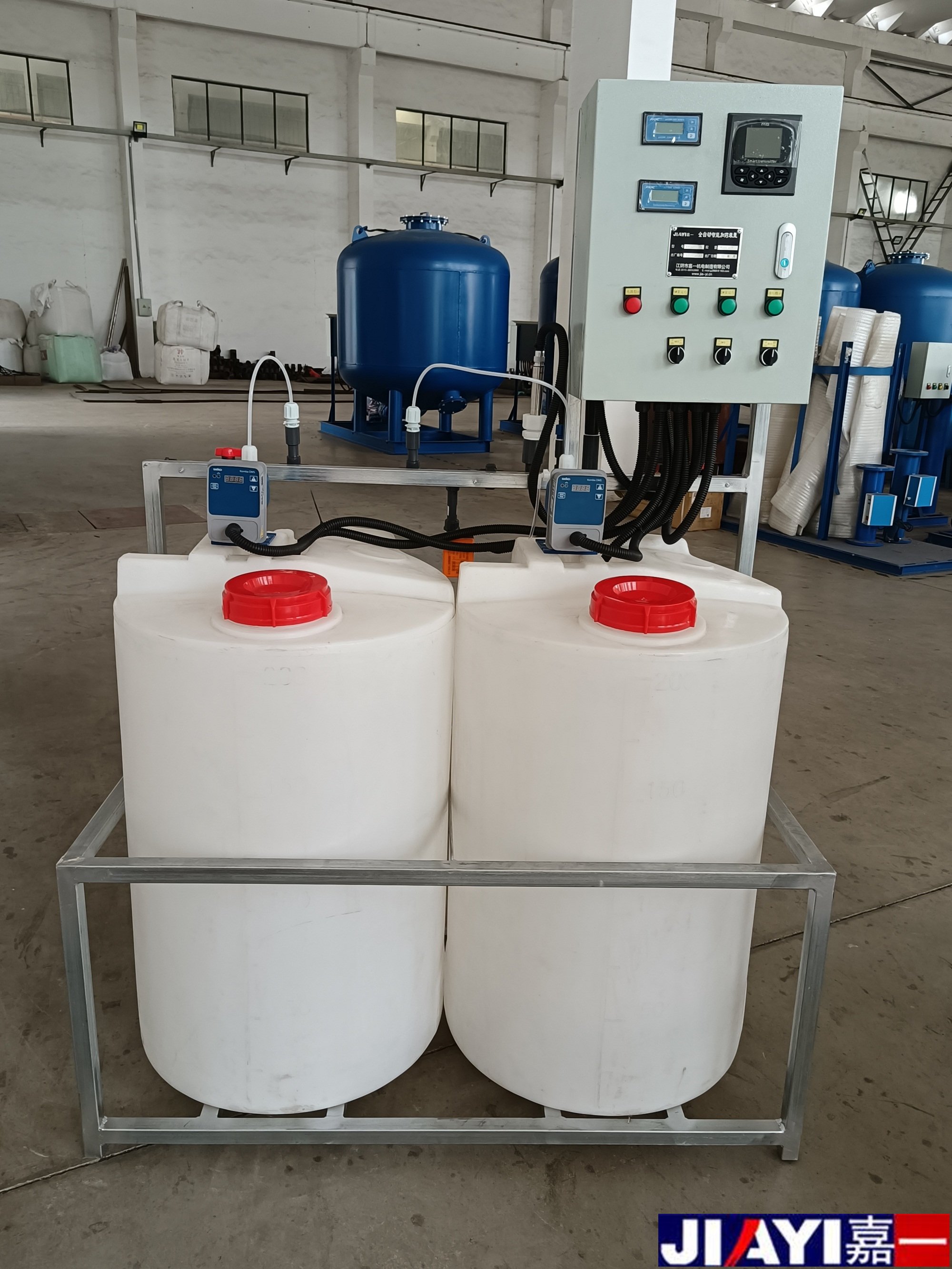 全自動(dòng)加藥裝置采用時(shí)間程序控制,此控制方式無需儀表的支持,首先根據(jù)系統(tǒng)的運(yùn)轉(zhuǎn)需要設(shè)定自動(dòng)加藥的周期、加藥量、加藥時(shí)間和加藥頻率。在以后的系統(tǒng)運(yùn)轉(zhuǎn)過程中,到加藥周期,計(jì)量泵自動(dòng)打開加藥,加到規(guī)定的時(shí)間計(jì)量泵關(guān)閉;到排污周期,計(jì)量泵停止加藥,排到規(guī)定的時(shí)間后,計(jì)量泵繼續(xù)開啟,補(bǔ)充排污損失掉的藥劑,把系統(tǒng)的含藥量維持在正常的水平、加到規(guī)定的時(shí)間計(jì)量泵關(guān)閉。