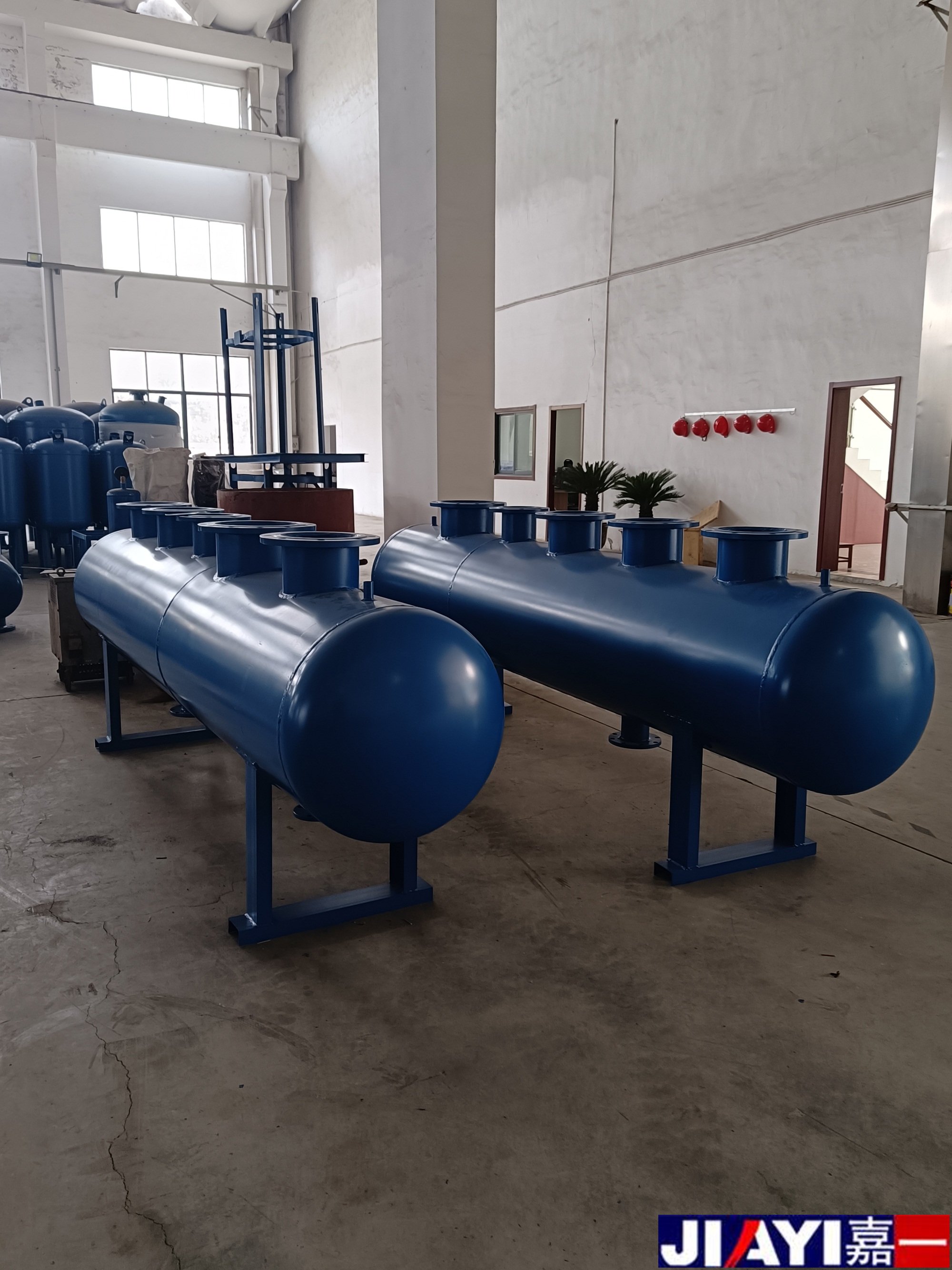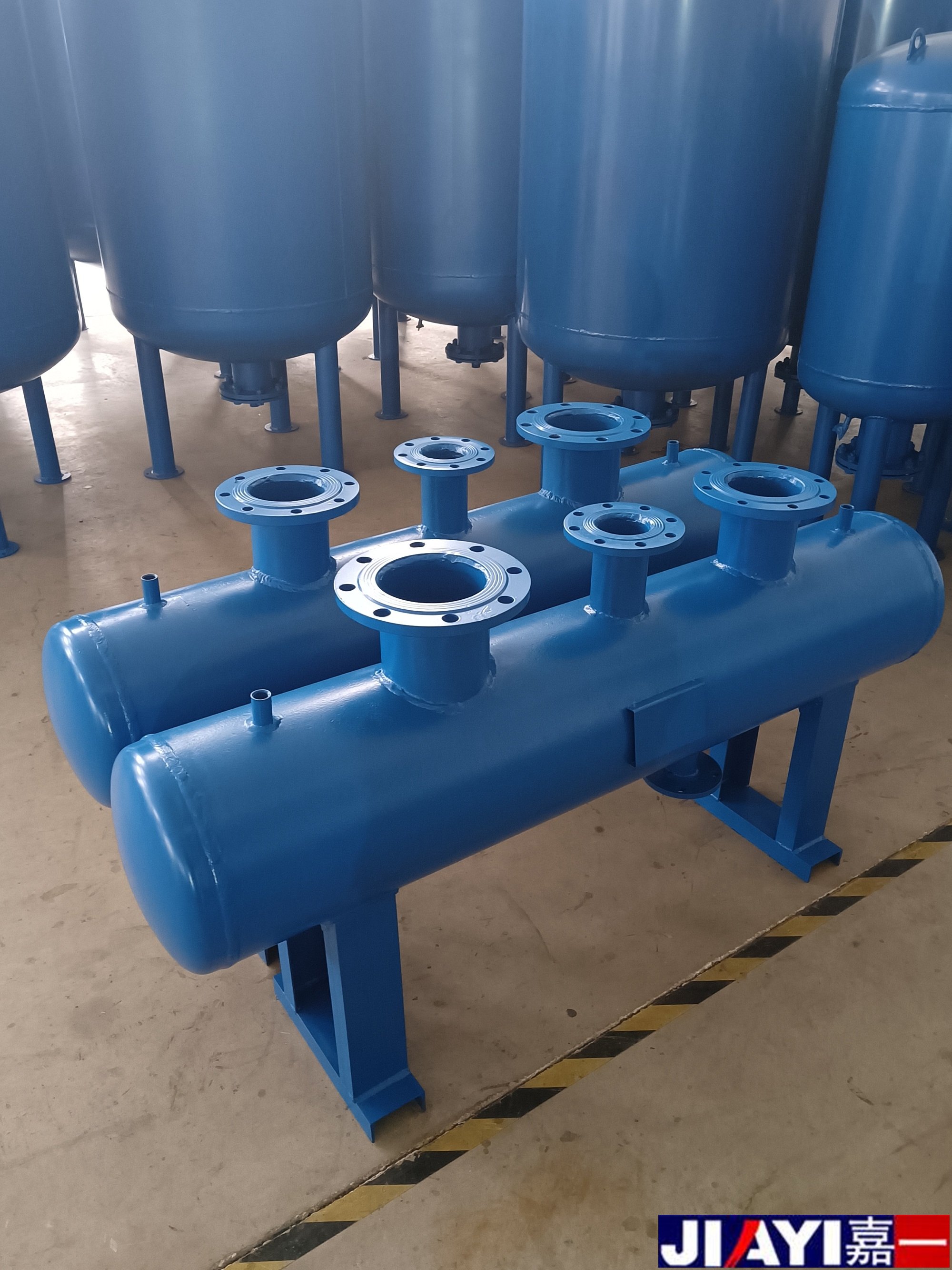 分水器是將一路進水通過一個容器分為幾路輸出的設備,而集水器則是將多路進水通過一個容器一路輸出的設備。其管理若干的支路管道,分別包括回水支路和供水支路,用碳鋼或不銹鋼板制作,屬于壓力容器類專業(yè)制造,其需要安裝壓力表溫度計。它一方面將主干管的水按需要進行流量分配,保證各區(qū)域分支環(huán)路的流量滿足負荷需要,同時還要將各分支回路的水流匯集,并且輸入回水主干管中,實現(xiàn)循環(huán)運行。其回水再利用,可達到更節(jié)能的效果,可以同時滿足供熱與制冷的需要。