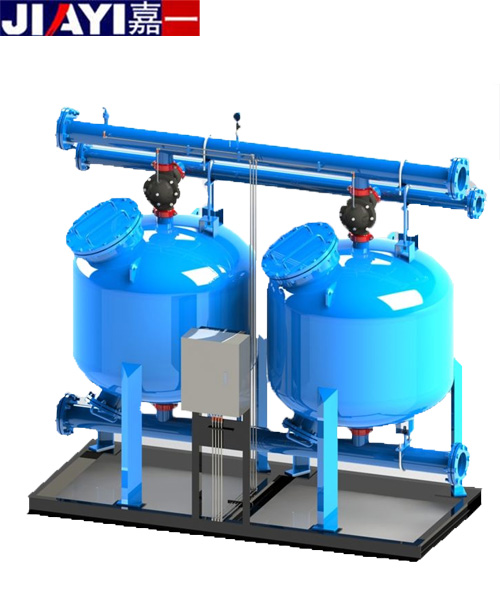 全自動淺層過濾系統是由多個標準高速砂缸單元組成,其內部設有獨特的布水器和集水器,擁有獨特的雙向自動沖洗閥,可實現在正常系統運行中多個標準高速砂缸逐個單獨的反沖洗,全自動程序控制。具有反沖洗用水量小,設備安裝方便,易于操作等優點。該設備流量大,無需維護。根據不同的用戶要求,有立式和臥式兩個系列。適用于工業和民用循環水系統的水質處理。