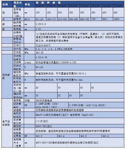 系列多筒式自動反沖洗過濾器主要技術(shù)性能和參數(shù)