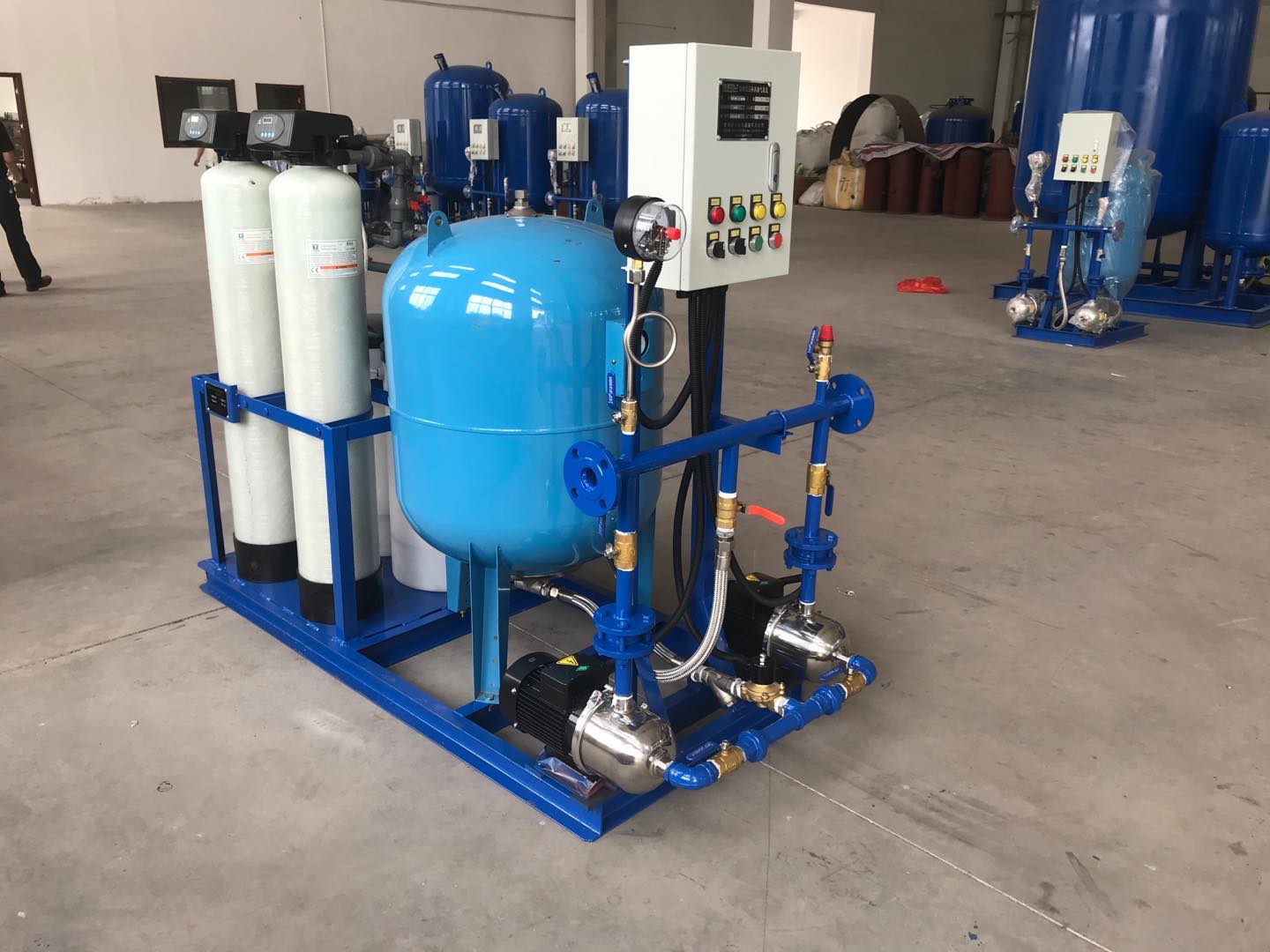 真空定壓補水排氣裝置的設計主要用于供熱、采暖、空調系統壓力的自動供排水和維護。該設備的部件由隔膜式壓力罐、水泵、控制箱、底架、壓力感應裝置、管路、閥門等組成。可廣泛應用于高層建筑、社區供水、工礦企業的上述系統中。
