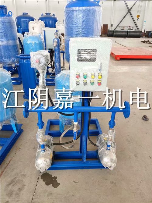 定壓補水裝置當氣壓水罐經過安裝驗收后,就可以對電接點壓力表上限P2,下限P1壓力數值進行整定,然后開始向氣壓水罐進行充水和充氣,上述工作完成后,便可接通電源開始供水。啟動水泵,向建筑管網和氣壓水罐水室內充水,由于水是不可壓縮液體,隨著水量的不斷增加,水室的體積也不斷擴大,囊形隔膜不斷向外擴張而積壓氣室,使其體積不斷縮小,管內的壓力也不斷增高,當達到設計壓力P2時,電接點壓力表指針碰到觸點,水泵則自動停泵。在水泵自動停止運轉的時間里,由于氣室被積壓的氮氣具有膨脹力,積壓囊形隔膜,使水室及管網的水具有一定的壓力,保證正常供給用戶用水。