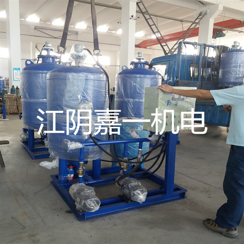 定壓補水裝置當氣壓水罐經(jīng)過安裝驗收后,就可以對電接點壓力表上限P2,下限P1壓力數(shù)值進行整定,然后開始向氣壓水罐進行充水和充氣,上述工作完成后,便可接通電源開始供水。啟動水泵,向建筑管網(wǎng)和氣壓水罐水室內(nèi)充水,由于水是不可壓縮液體,隨著水量的不斷增加,水室的體積也不斷擴大,囊形隔膜不斷向外擴張而積壓氣室,使其體積不斷縮小,管內(nèi)的壓力也不斷增高,當達到設計壓力P2時,電接點壓力表指針碰到觸點,水泵則自動停泵。在水泵自動停止運轉(zhuǎn)的時間里,由于氣室被積壓的氮氣具有膨脹力,積壓囊形隔膜,使水室及管網(wǎng)的水具有一定的壓力,保證正常供給用戶用水。