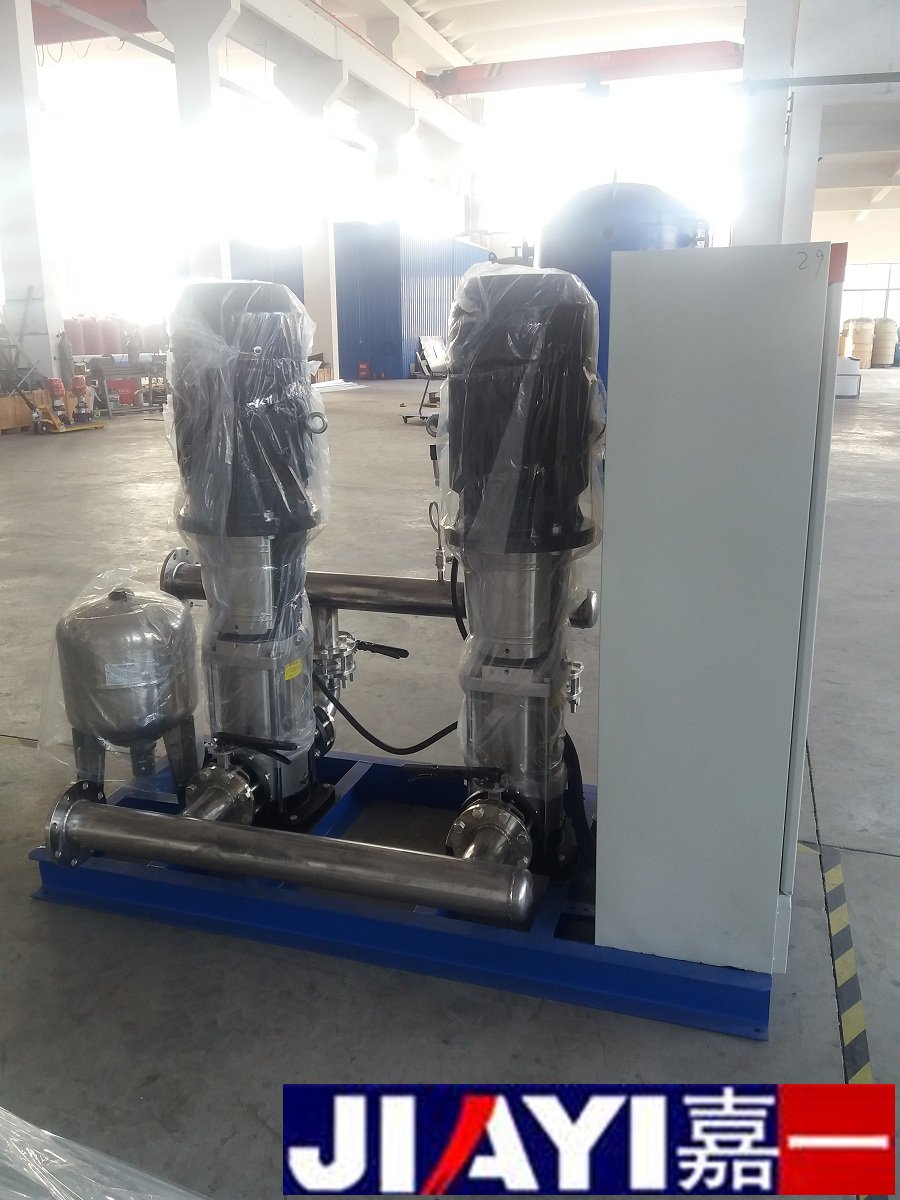變頻供水機組是將交流變頻調速技術和微機控制技術應用于水泵自動控制設備之中,并與水泵機組相結合的機電一體化供水裝置。其核心設備交流變頻調速控制柜融合了先進的微機控制變頻調速技術,先進的微機控制PID調節技術和先進的微機可編程控制器等國際上先進技術。本設備依據供水管網中瞬時變化的壓力和流量參數,自動改變水泵的臺數和運行轉速,實現恒壓變量供水的閉環調節。