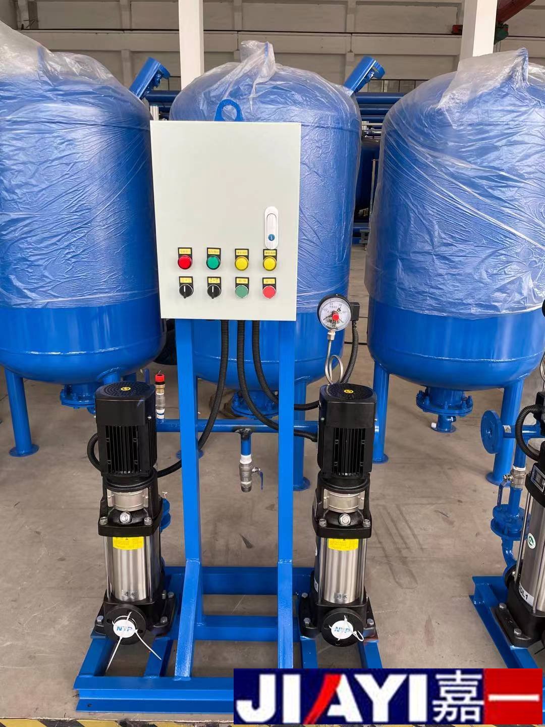 定壓補水機組由囊式壓力罐、水泵、控制箱、底架、壓力感應裝置、管道閥門等組合而成,是一種兼有升壓、調節、儲水、供水等多種功能的常用供水設備。