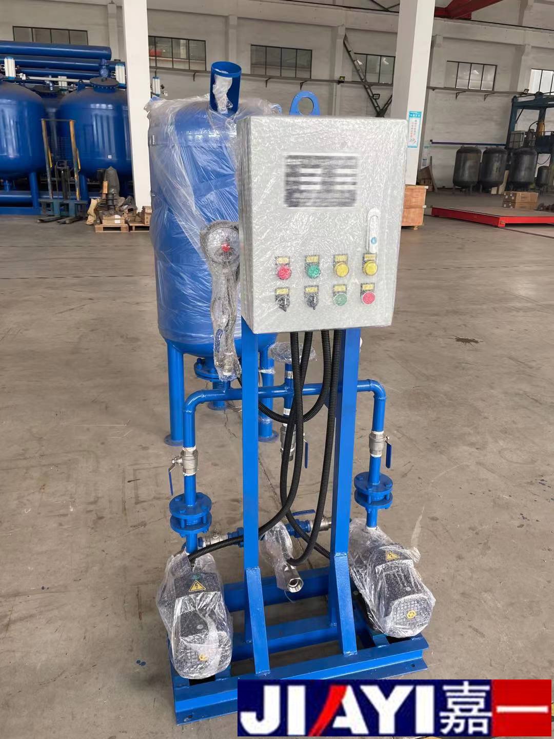 分體式定壓補水機組采用特殊技術措施,把膨脹部分和氣壓穩壓部分分開設置,可使系統的絕大部分膨脹量儲存于隔離的膨脹器中,設備的體積利用率可達90%以上,因此整機體積、高度大為縮小,節約用地50%~60%,  便于設備布置、安裝,又節約了機房的土建成本。
