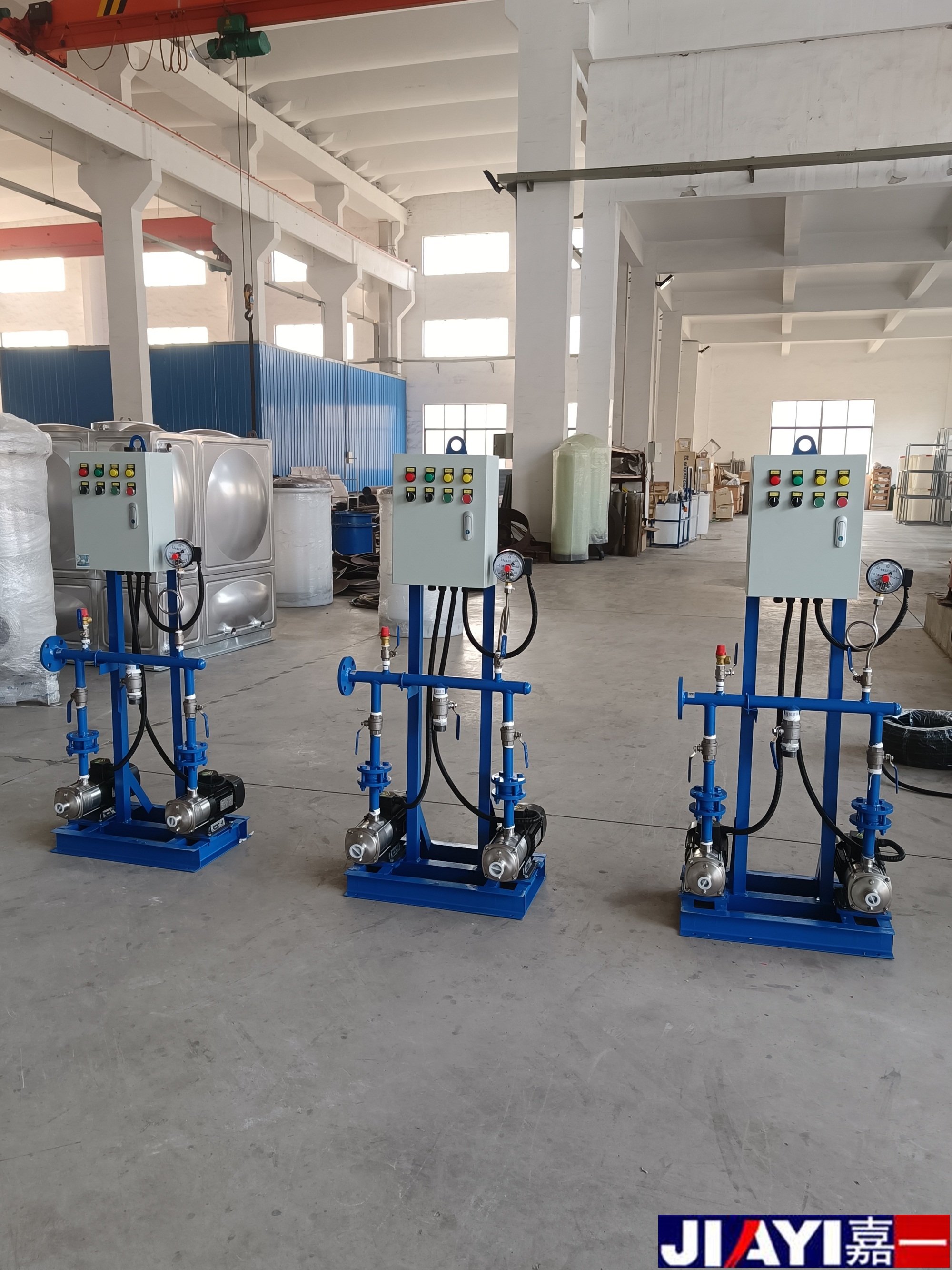 定壓補水機組由囊式壓力罐、水泵、控制箱、底架、壓力感應(yīng)裝置、管道閥門等組合而成,是一種兼有升壓、調(diào)節(jié)、儲水、供水等多種功能的常用供水設(shè)備。定壓補水機組利用氣壓罐的可調(diào)節(jié)能力,可自動調(diào)節(jié)用戶水量的變化,當(dāng)用水量減少或不用水時,可較長時間不啟動水泵,達到節(jié)能目的。與水塔、高位水箱相比可節(jié)省投資約40%-60%。該設(shè)備結(jié)構(gòu)緊湊,與其他傳統(tǒng)的供水裝置相比減少了占地面積,節(jié)省了土地資源。本設(shè)備全自動運行,無需專人管理,工作可靠。