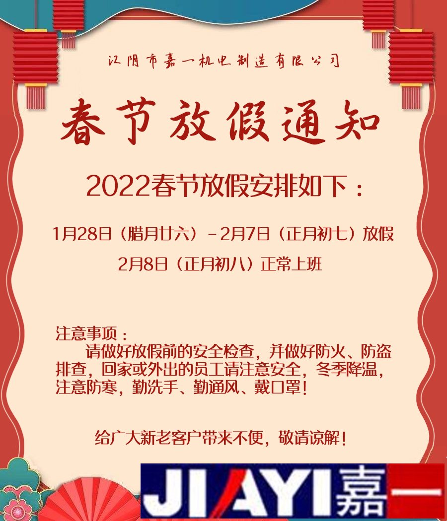 作者:江陰市嘉一機電制造有限公司瀏覽量:59次時間:2022-01-27 13:21