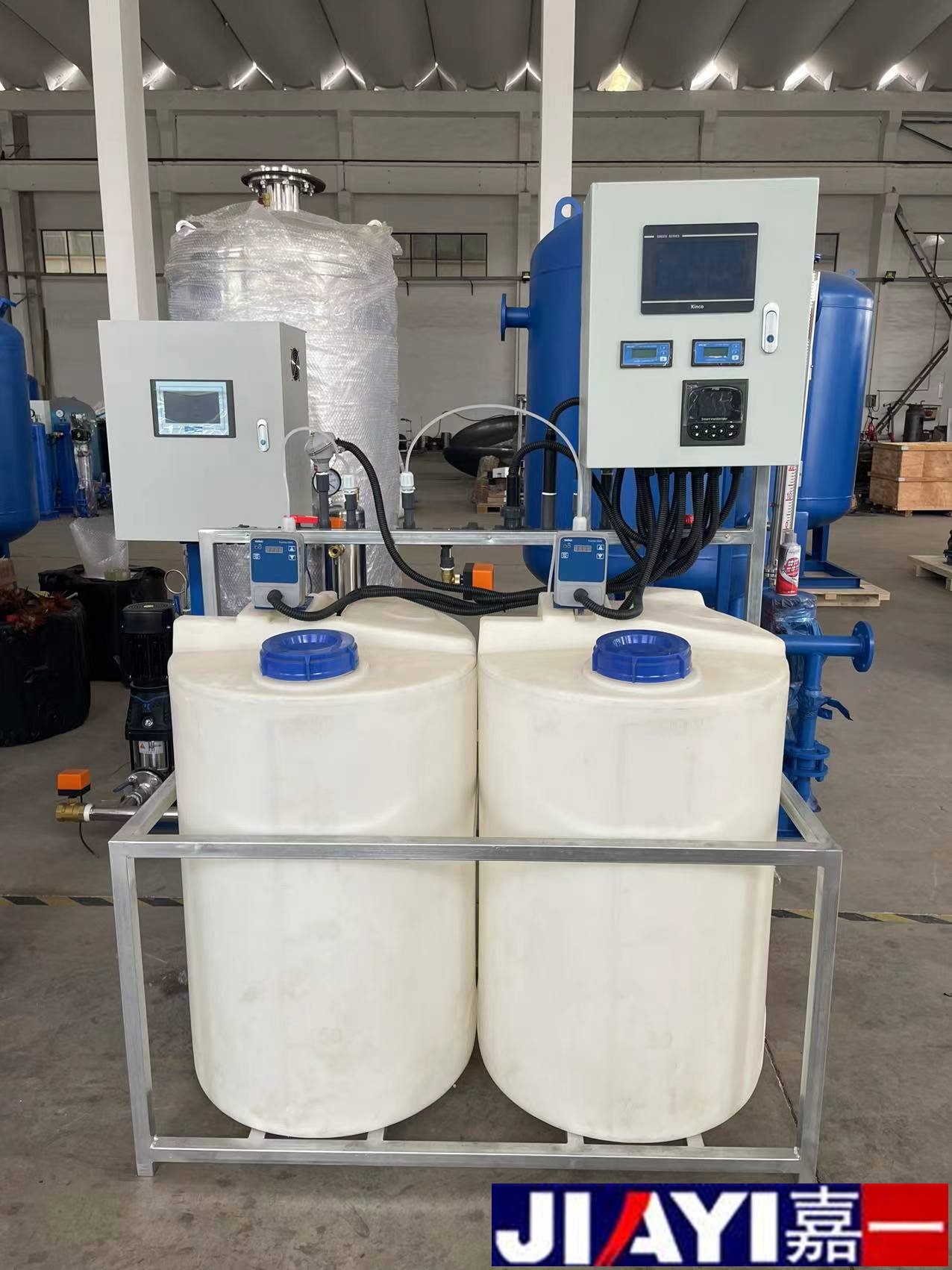 全自動加藥裝置采用時間程序控制,此控制方式無需儀表的支持,首先根據系統的運轉需要設定自動加藥的周期、加藥量、加藥時間和加藥頻率。在以后的系統運轉過程中,到加藥周期,計量泵自動打開加藥,加到規定的時間計量泵關閉;到排污周期,計量泵停止加藥,排到規定的時間后,計量泵繼續開啟,補充排污損失掉的藥劑,把系統的含藥量維持在正常的水平、加到規定的時間計量泵關閉。